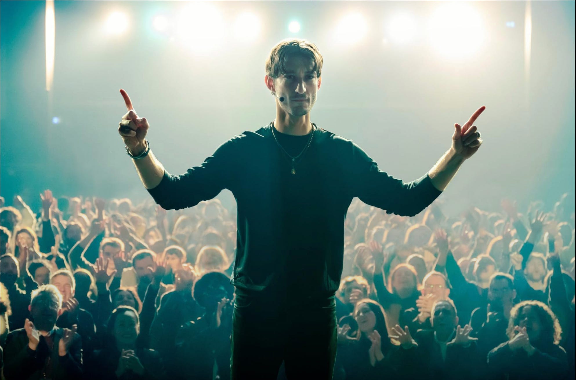 On sait comment fonctionnent les films qui mettent en scène des personnages faisant profession de fasciner les foules : présentateurs télé, hommes politiques à la résistible ascension, VRPs star, gourous en tout genre. La baudruche doit être dégonflée. Le mensonge doit être dénoncé. Le masque doit être arraché.